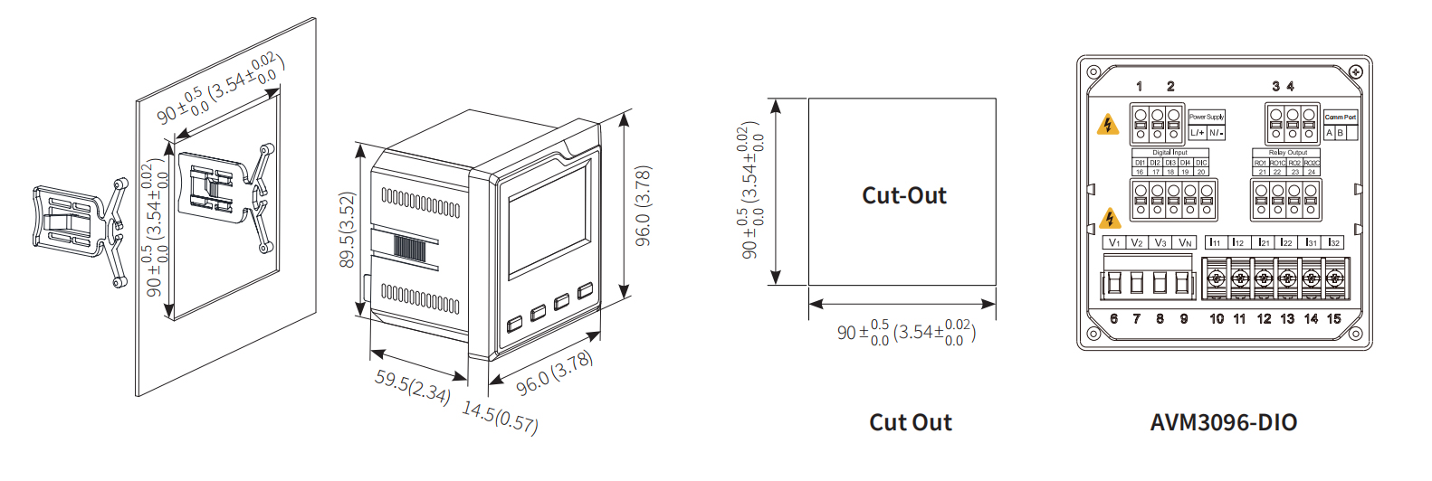 Max/Min Value Max/Min Parameter Value Parameter Sources: Voltage, Current, Power, Frequency, etc Communication RS485 Port Modbus RTU Protocol Multiple I/O Functions Digital Input: 4 Channels, Monitor Switch Status or Pulse Count; SOE Record Relay Output: 2 Channels, Relay Command Control Output ON/OFF; Limit Alarm Control Output Display LCD Display, White Backlight View Metering Parameters, Energy, Power Quality and Setting Value |