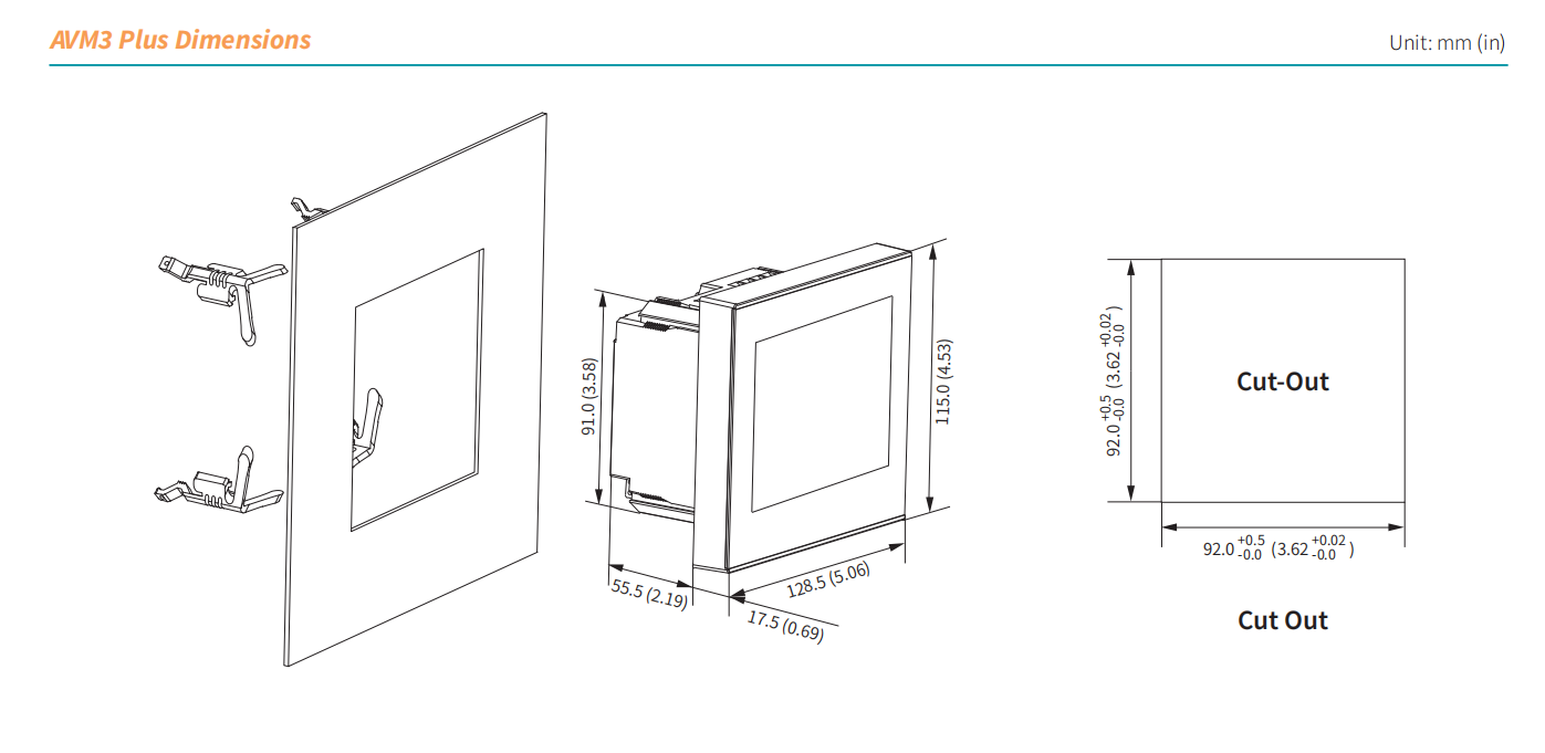 | Dimension | 96×96×68.5 mm/3.78×3.78×2.7 in(Cutout:92×92 mm/3.62×3.62 in;3.5"LCD) | ||