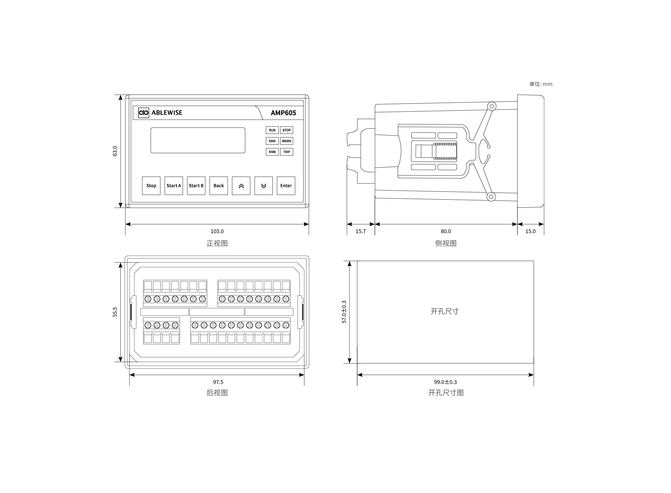 | 外形尺寸 | 63×103×110.7mm 开口尺寸为:99×57(±0.3)mm | ||