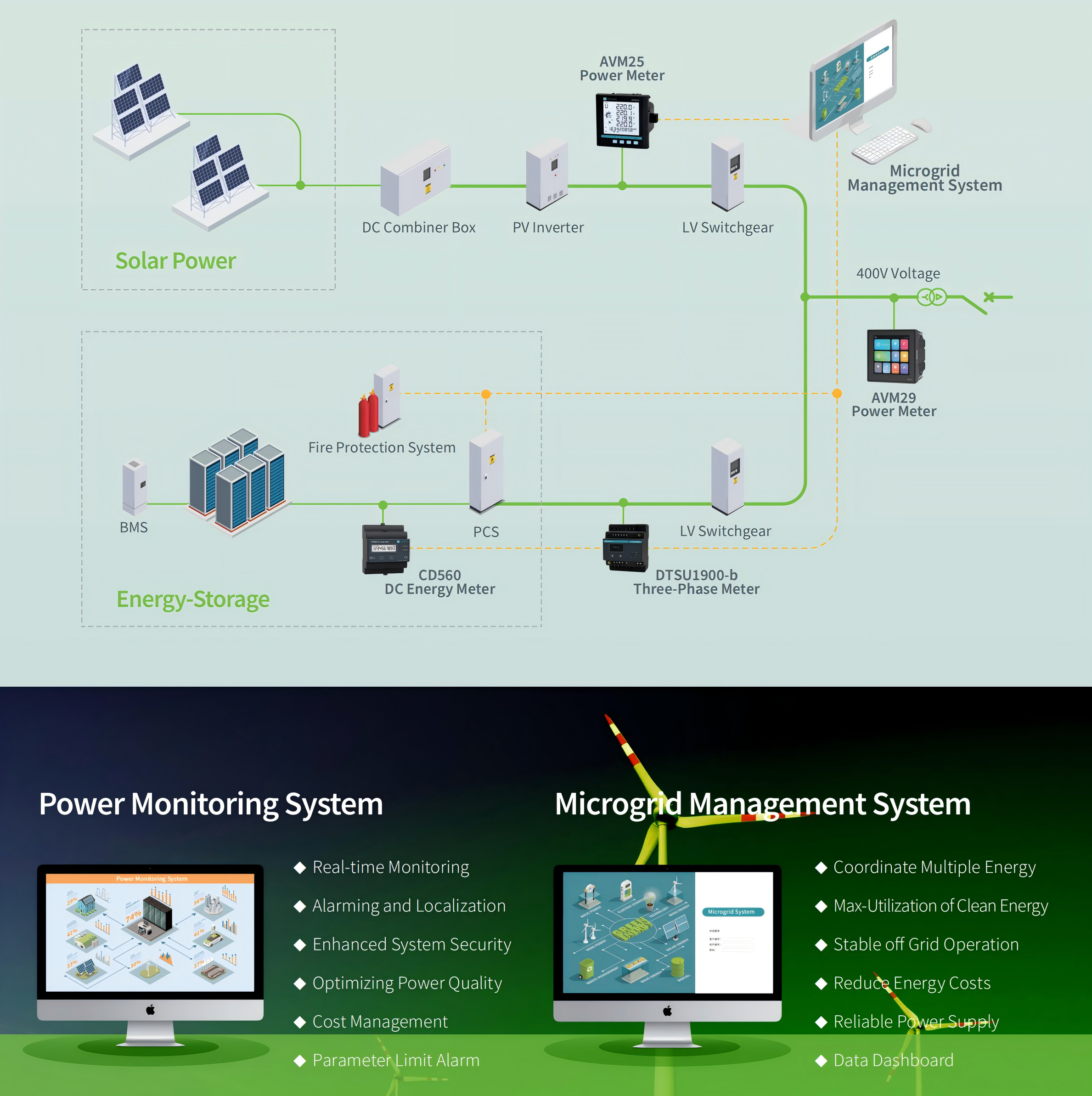 The microgrid monitoring solution is a comprehensive power energy management system that seamlessly integrates photovoltaic power generation, energy storage equipment, and electrical facilities. It employs intelligent methods to achieve coordinated operation among these three com-ponents.